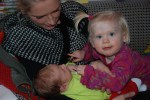 Mama kreeg maandag bezoek van Biek (Bianca!) en Kyara (zie foto onder). Leuk zeg, die Kiara, kijk eens, ik ben bijna even groot!