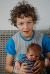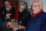 De wijkverpleegster van het consultatiebureau (moeilijk woord!) is ook geweest. Die keek heel tevreden. Ze zei dat ik een mooie kleur heb, helder uit de oogjes kijk, een stevig lijf heb, alert ben en al boven m’n geboortegewicht. Dat was 3550 en nu ben ik 3700 gram. Doet me denken aan die grap met de olifant en de muis die over een houten brug lopen.