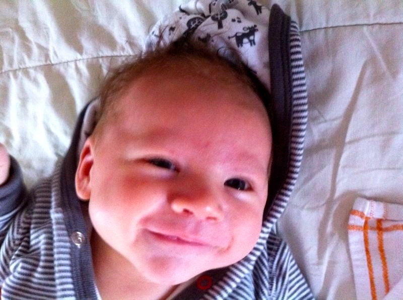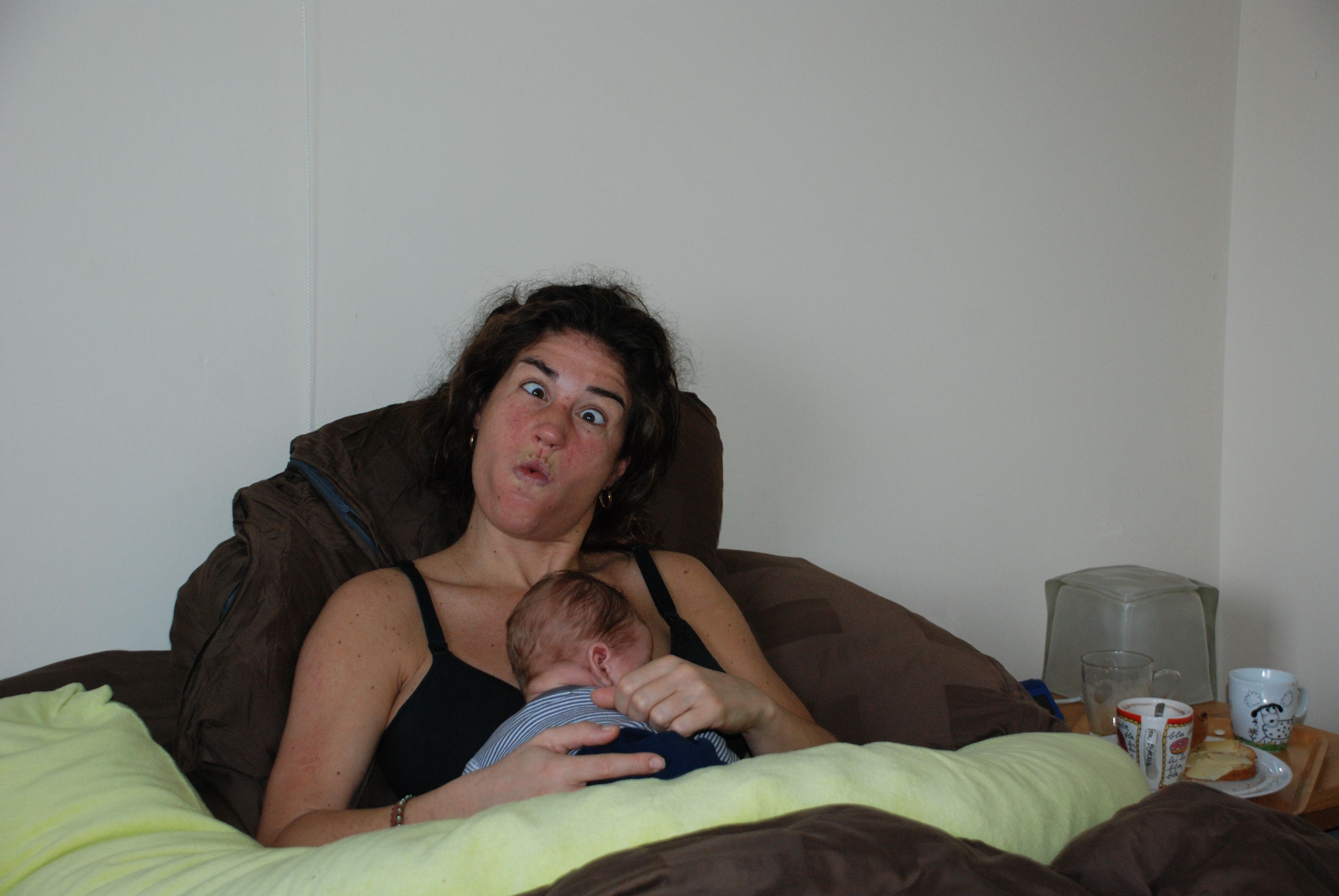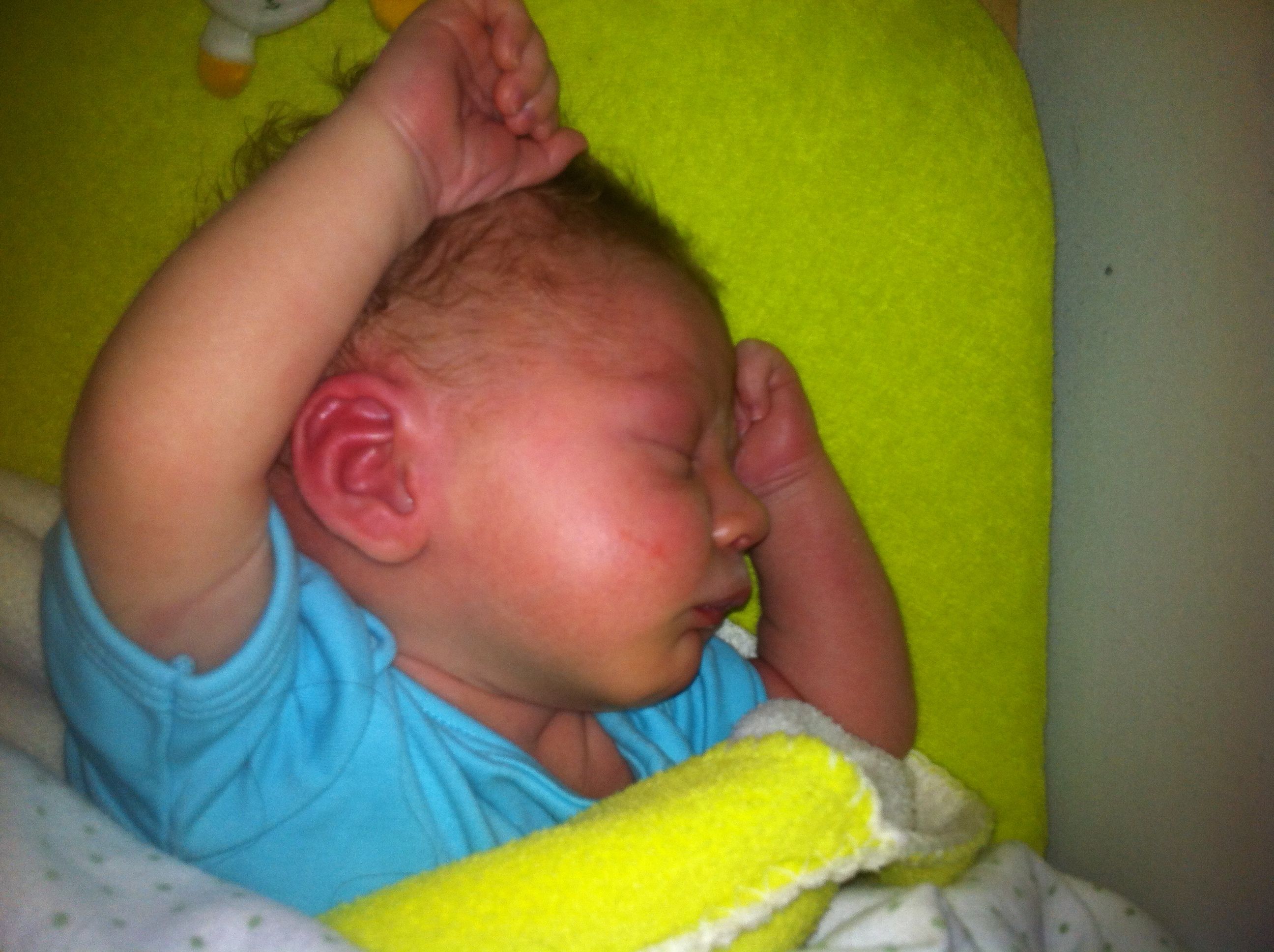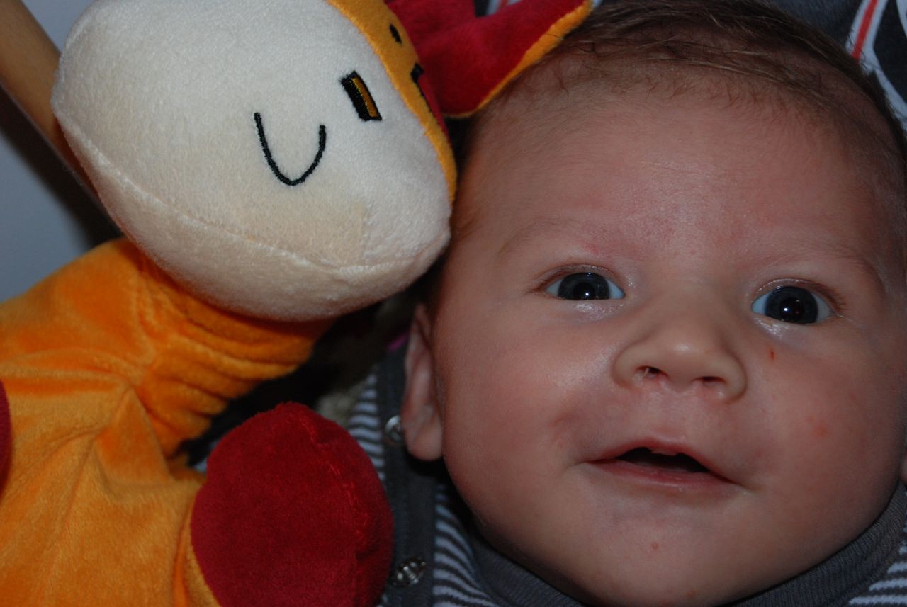 Eigenlijk ben ik me niet zo bewust van mijn nieuwe allerbeste vriend en eigenlijk is het mijn eerste, dus automatische m’n allerbeste,…. Maar papa heeft hem naast me neergelegd en ging rare dingetjes doen en dat vond ik natuurlijk wel lachuh.