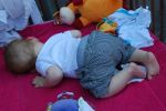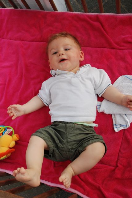 Ik zag er cool uit vind ik zelf. Polootje en gestreept kort broekje. Niks mis mee! en het was leuk op de crèche. Vanochtend direct al was Benthe er (handig met zulke leuke kleren) en dan begint de dag goed. Papa heeft me op het speelkleed gelegd en dan lijk ik ineens een stuk kleiner, of is de rest dan ineens een stuk groter. Ik weet het niet en denk er eerlijk gezegd ook niet zoveel bij na, want ik moet spelen! En slapen, dat heb ik ook veel gedaan. Na gisteren had ik dat wel nodig.