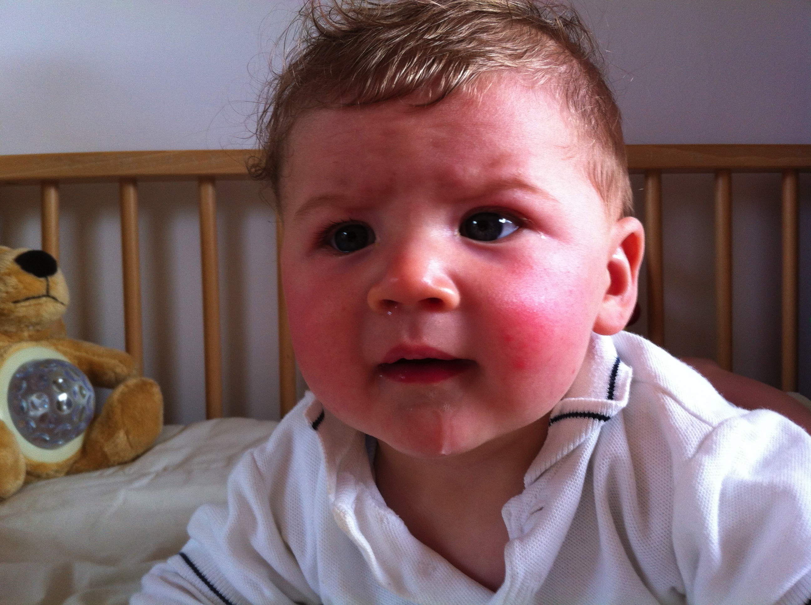 Ik hen trouwens heel veel geslapen. Van 11 tot 14 uur en ’s middags nog eens. Echt even inhalen en m’n lijfje wat te laten rusten. Want als je rust groei je ook! Thuis zijn we eerst even gaan wandelen met de honden. Is altijd lekker om de dag af te sluiten en toen naar bed. In ieder geval, dat was het plan van mama. Ik dacht daar anders over. Omdat ik zo lang geslapen had, was ik nog niet toe aan slapen. Na wat huilen mocht ik naar beneden. Veel gezelliger en dan later naar bed. Kon ik papa ook nog even zien.