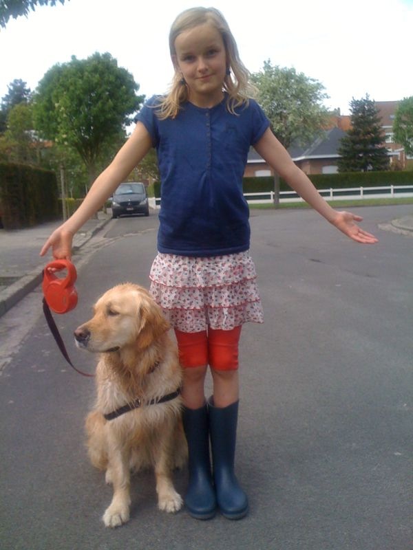 Oh ja, kreeg nog een leuke foto van Zelda! Die was net als Rubia, hun hond in het water gekukeld! En toen was ze nat. Wat kijkt ze beteuterd hè! Maar het viel mee hoor en was eigenlijk heel grappig.
