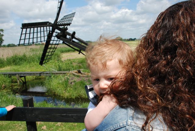 Op de weg er naar toe vond ik dat we even moesten stoppen en dan ga ik gewoon huilen, alsof er iets aan de hand is. Ik weet niet precies waarom, maar we stopten precies bij deze mooie molen. En op deze foto lijkt het alsof die uit m’n hoofd groeit, maar dat is niet zo hoor! Die molen heet trouwens een Paaltsjasker en werd gebruikt om water op te pompen, wel 25.000 liter per uur. Ik wilde hem gewoon even aan mama, papa, Siebe en Zelda laten zien. Toen zijn we verder gereden en als ik zo uit het raampje kijk, kan ik niet anders zeggen dan dat Fryslân moai is!
