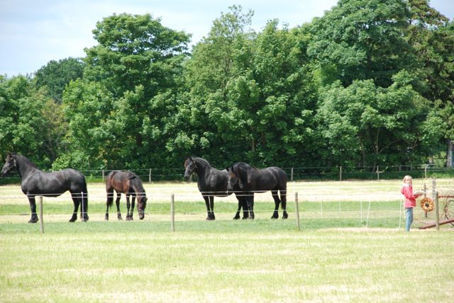 Zelda is direct naar de paarden gegaan, om ze te tekenen en te aaien. Zulke grote paarden als je haar er naast ziet staan. Het lijken wel Friese Paarden. Heel mooi in ieder geval en Zelda is er dus helemaal niet bang voor! Stoer.