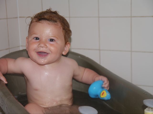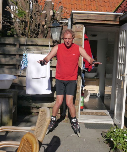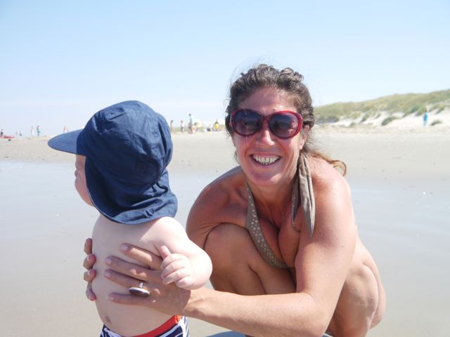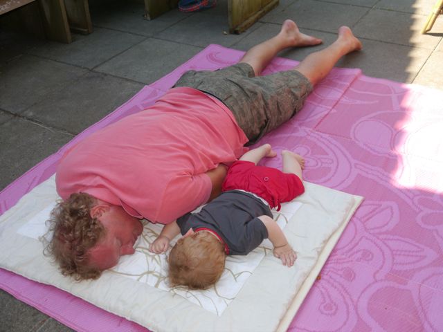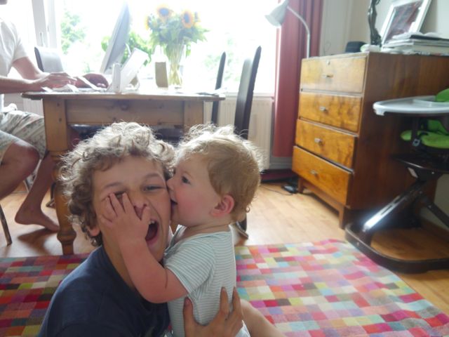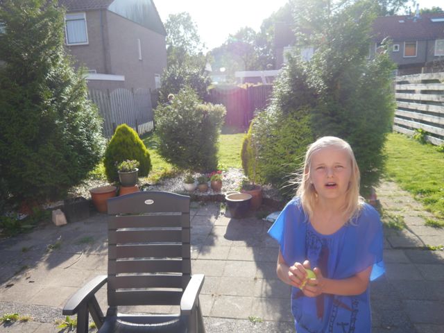 Thuisgekomen, was daar het weerzien met Siebe! Ook al leuk, want het is leuker iemand te zien als je het niet verwacht dan omgekeerd (oftewel iemand verwachten die je niet leuk vindt). Na wat geknuffeld te hebben, ben ik gaan kruipen achter de zonnecréme aan. Ik serieus, maar ik had het gevoel dat papa en Siebe er een beetje een grapje van maakten… Nou ja, het gaat mij om de oefening!