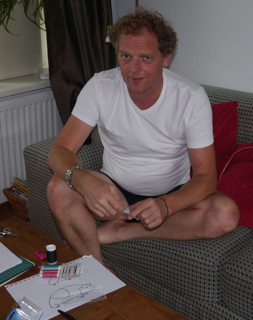 Ik heb ook boekje gelezen met Olma van Nijntje. Die heb ik ook op televisie gezien, maar als Olma het voorleest is het veel leuker! Ik wil dan telkens Nijntje aanraken, maar dat kan niet echt, want ze is getekend! Siebe had ook nog mooie tekeningen gemaakt. Je kunt het zien bij papa die aan het naaien is. Ongelooflijk hé! Zulke grote handen en zo’n klein naaldje, maar het moest wel, want Siebe had gisteren ineens z’n broek op z’n enkels in volle ‘run’ en scheurde vervolgens de knopen van z’n broek. Het leek funnijust hoom viedejoos wel! En papa stond ook ineens met een knoop in z’n hand van z’n eigen broek. Tsja, dan moet je wel hè!