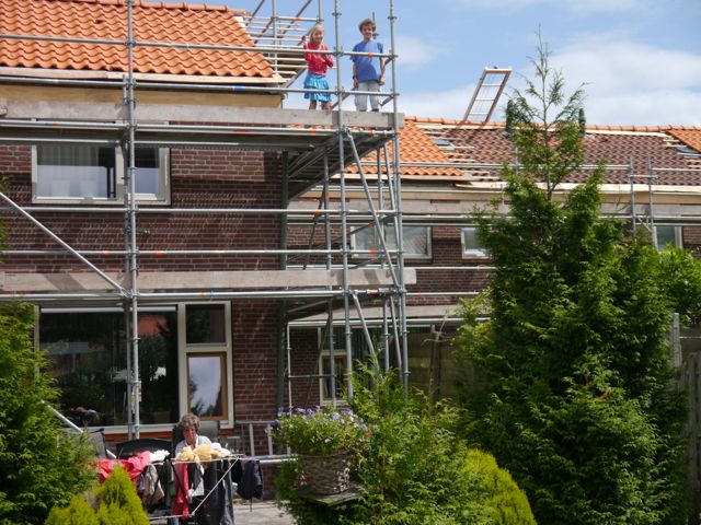 Siebe en Zelda ook. Die hadden een zilveren-mannetje-aan-een-parachute gemaakt van een plastic zakje, touwtjes, houtjes en zilverpapier. Heel knap en met de stijgers rond het huis was het een hele val! Van het zilveren mannetje dan hè!. Oh ja, het ziet er gevaarlijker uit dan het is hoor. Het zijn veilige stijgers, speciaal voor kinderen.
