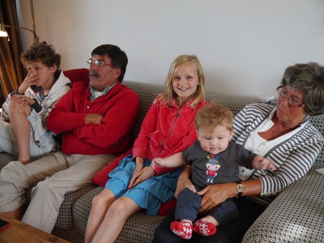 En toen waren ze er ineens. Grappig. Van niet naar wel in 4 seconden en het voelt in één keer weer normaal! Fijn is dat. Zo’n dag is leuk en kabbelt voorbij, met spelen, eten en lachen en verwonderlijke gezichten van Olpa en Olma. Logisch, want die hebben me al lang niet gezien en ik ben best gegroeid. Dat vonden zij ook. En dat ik kan kruipen en dat ik kan staan. Ik geef toe dat ik dan wel even extra goed m’n best doe hoor. Siebe en Zelda zijn er er slot van rekening ook bij hè!