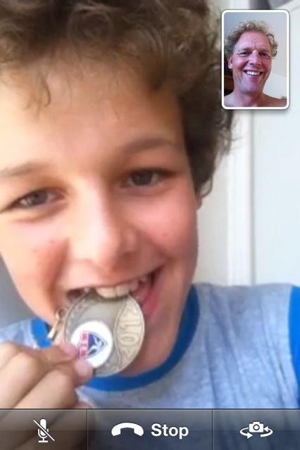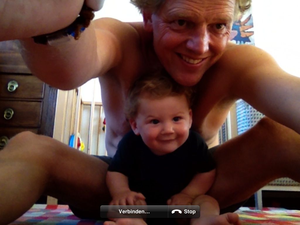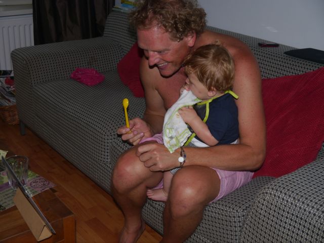 Ook als papa thuis komt. Grote gezelligheid met z’n allen. Ik heb met Siebe en Zelda geskyped. Die leven momenteel als god in Frankrijk. Veel zon een klein maar fijn zwembad en Zelda had prachtig gekleurde nagels!