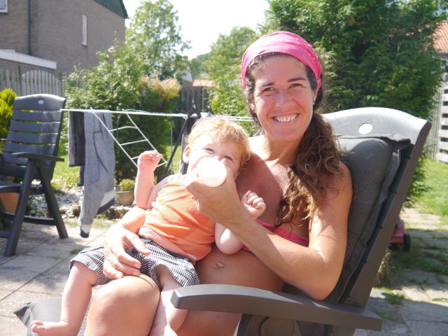 Begrijp je wat ik bedoel? Ik hoop het, want ik snap het niet. Ik kijk denk ik verschrikt, verbaasd en lief in één blik. In ieder geval heb ik bij mama gedronken en dat is genieten. Lekker knuffelen en eten op hetzelfde moment, dat is een goed begin van een goeie dag.