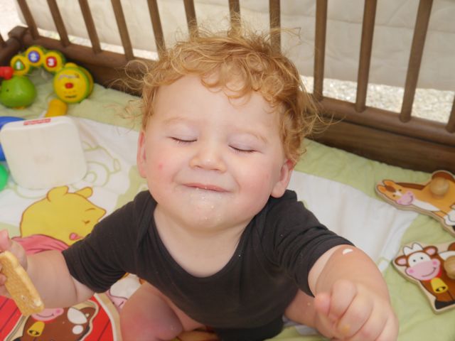 Eén uitdrukking van vandaag is “Ochtendstond heeft goud in de mond”. Ik was al wakker om twintig voor zeven en was druk aan het babbelen met m’n plastic Nijntje boekje. Dat is leuk voor wanneer papa en mama binnenkomen, want dan hoef ik niet meer wakker te worden en kan direct lachen. Die lach is dan de uitdrukking van m’n gezicht, want echt praten kan ik nog niet.