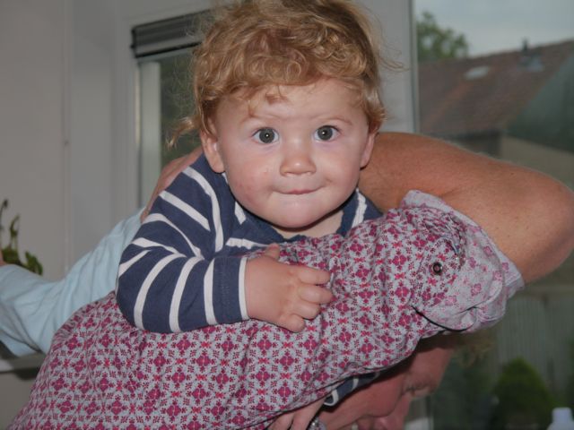 Genieten deden we ook toen papa thuis kwam. Dan zijn we beiden blij, alleen was ik in tweestrijd. Hopla of papa. Gelukkig heb ik 2 ogen en verdeel ik m’n aandacht. Maar na Hopla was het onverdeelde aandacht. Met twee handjes z’n gezicht vastpakken en knuffelen en zoentjes geven!