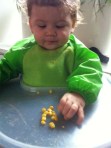 Nee, ik ben weer even in een melkdrinkfase. En veel, 300 milliliter deze middag voor het slapen gaan. En natuurlijk slaap ik niet te lang, want het is zo gezellig met mama! Wat dan wel weer leuk is, is dat als ik brood van mama op de tafel zie liggen, pak ik het zelf en stop het in m’n mond. Zo, ben ik dan ook weer.