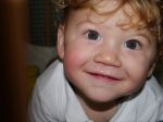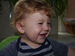 Toen papa thuiskwam stond ik in de box op hem te wachten. Het woord papa ken ik en mama had dat al een paar keer gezegd en toen hij z’n hoofd om de hoek stak, krulden mijn mondhoeken naar m’n wenkbrauwen en hebben we lekker gek gedaan en hard gelachen Daar word ik vrolijk van.