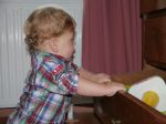 En de appeltaart dan weer lekker! Ik heb er kleine stukjes van gegeten en dan heb ik het nog niet gehad over alle spulletjes en dingetjes waar je aan kunt zitten en op de grond kunt gooien. Of laden in de keuken die je open kunt trekken en dicht kunt doen zodat je vingers er bijna tussen komen. Gelukkig was mama er om me 13 keer uit de keuken te halen. Handug, mama’s.