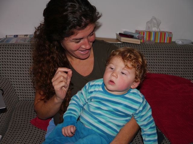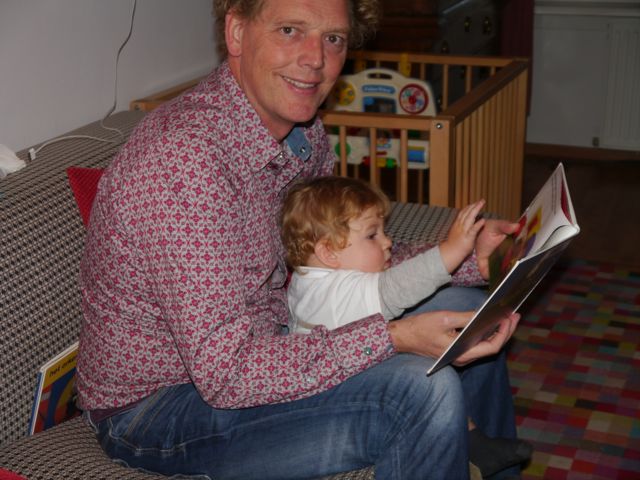 Daarna hebben we de nieuwe boekjes gelezen. dan luister en kijk ik aandachtig en begrijp veel ondanks al die woorden die ik niet begrijp. Bij het woord ‘kus’ schiet ik naar voren en kus Roosmarijn! Tegen het laatste boekje, was de begintijd van het naar-bed-gaan-ritueel aangebroken.