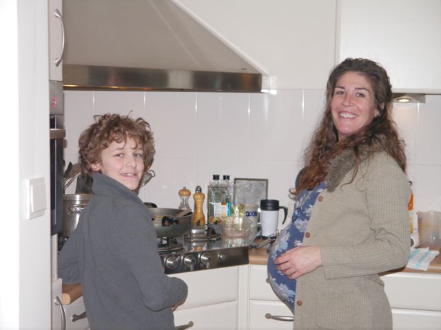 En binnen waren Siebe en Zelda er om ons te verwelkomen. Gezellig! Lekker heen en weer lopen en kletsen over knopen en Hai Hai roepen in de telefoon en gek doen en donderjagen. Dan ben ik ineens minder moe.