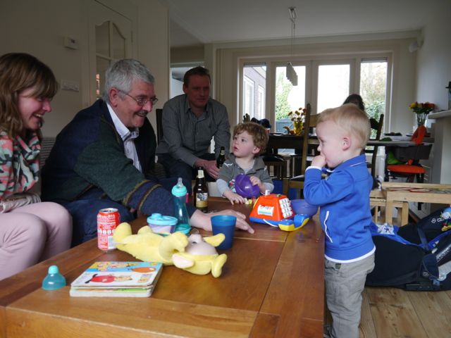 De nacht was korter dan papa en mama gehoopt hadden, ondanks het omkoopflesje. dat heeft me nog een nog 2O minuten zoet gehouden. OK, ik geeft het toe, het gevolg van die korte nacht was wel een chagrijnige Dzjez.