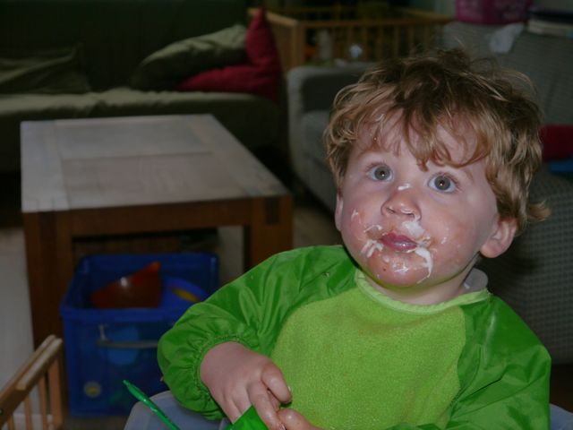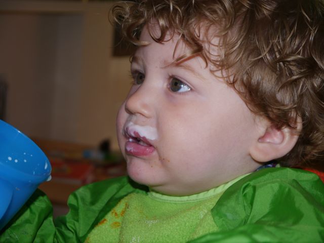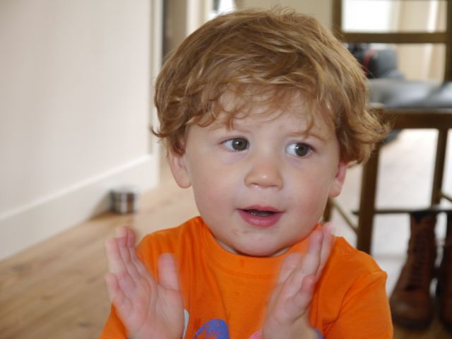 ik was in de slaapkamer van papa en mama en wat aan het zingen en naar mezelf in de spiegel aan het kijken en zei wel 4 keer achter elkaar “MaMa, MaMa, MaMA, MaMa”, en ik hoor papa zeggen Hey! En van schrik zei ik toen weer papa, maar het zit er aan te komen…