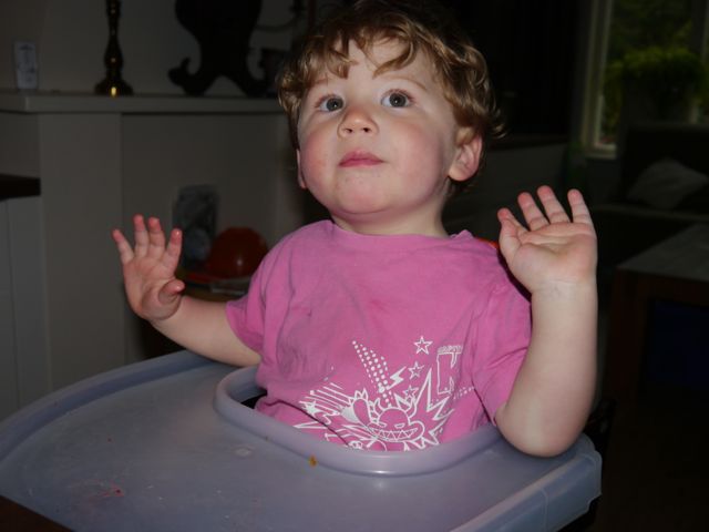 Om half negen, heeft papa me, nadat ik op de vraag “zullen we naar boven gaan?” ja had geantwoord, naar boven gebracht, waar ik eigenlijk weer terug naar beneden wilde. Papa was meegaand, totdat het ritueel zich herhaalde. Hij heeft me toen maar in bad gezet, ter opwarming en afleiding, nadat ik Papa (die eigenlijk mama is en Jay had begroet.