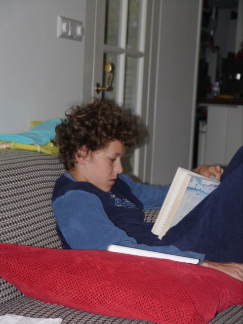 Ik heb hem binnen horen komen, maar was net niet in staat m’n grote hoofd op te heffen en over de rand te kijken. We hebben met z’n allen geslapen. dat kan op een vrije dag. Dus.