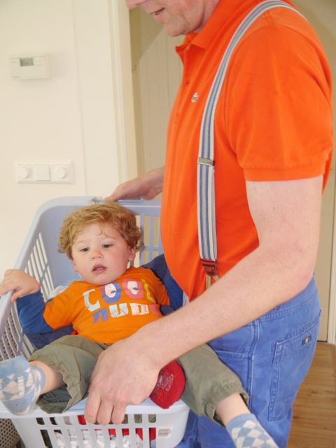 Zo’n dag vol oranje is ook wel vermoeiend. Zeker als papa me dan nog eens meeneemt in de wasman ook. Poeh hee!