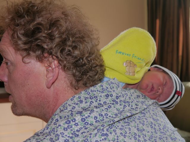 Ik was wel even in de war, toen ik ineens in een doek gewikkeld werd en in de lucht hing! OK, achteraf begreep ik het, ik werd gewogen. Ik ben al 3680 gram en zie geen verontruste gezichten.