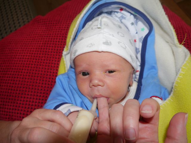 Ik denk dat ik gewoon drink, maar wordt genept door een melkspuit. Nou, mij hoor je niet klagen, zolang ik maar melk krijg. En het is toch mamamelk.Voor de rest ben ik vooral een slaperd, en als ik dat niet ben dan drink ik of is het nacht. Niet dat ik veel wakker ben, maar afgelopen nacht dronk ik nog al traag. Aan de borst en dan laat mama het maar lekker gebeuren. Ik ook.