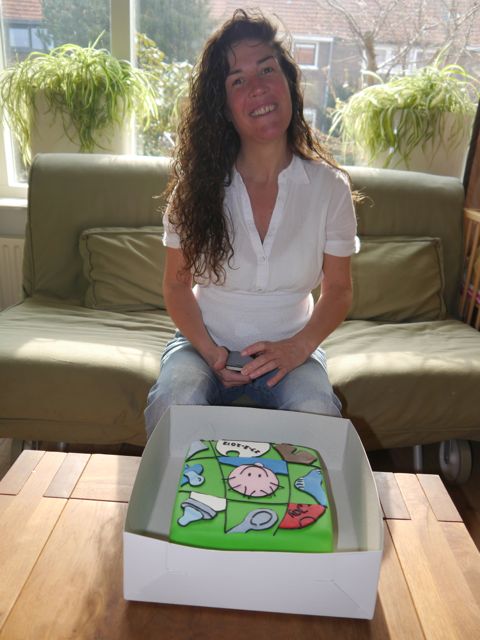 We hebben ook een heerlijke taart gekregen van een superlieve collega van mama, MANON! Ik stond er op! Zo mooi gemaakt en mijn naam. Had ze zelf gedaan. Ze is een kunstenaar. Een taartkunstenaar. Haar zoon Jorrit was speciaal uitgestapt op het station en mama was er speciaal naar toe gereden.