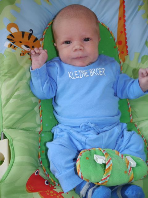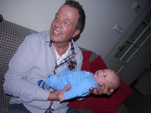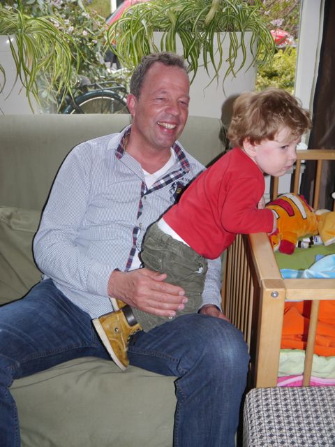Ik heb iets met Wim, want hij zat nog maar net op de bank of ik klom naast hem. Hup, zomaar, papa en mama keken met open mond (en ogen, anders zie je niks) en ik ging bij hem op schoot zitten. Ik liet hem Jay zien natuurlijk! Dat is mijn taak als broer.