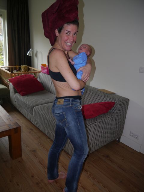 Mama was trouwens extra blij (ze is altijd heel blij, want ze heeft Dzjez en mij en in Naarden en ze heeft papa, allemaal blije dingen). Maar nu dus extra blij, want ze kon haar oude broek weer aan.