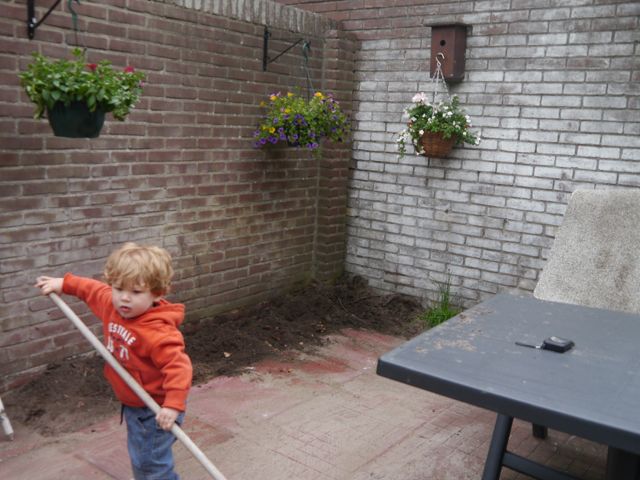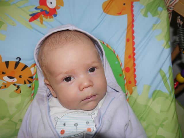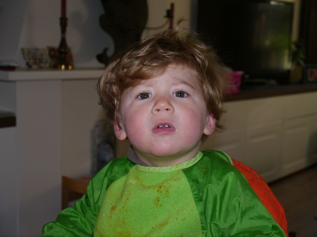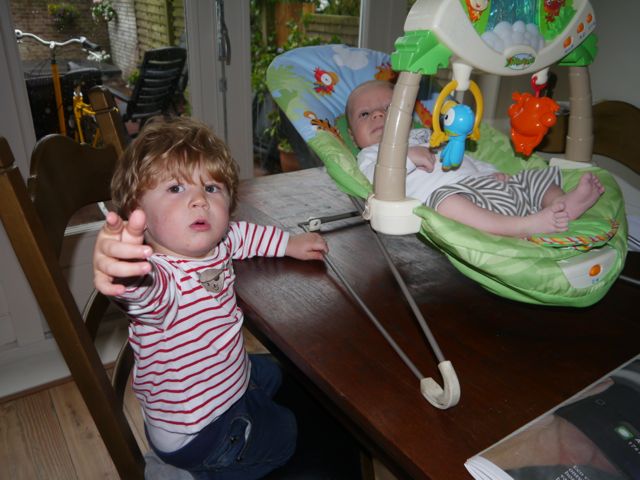 Dat is goed voor m’n oog, hand, volle luier coördinatie. Daar produceer ik er veel van op een dag. Ik plas en poep wat af. Ik ben een echte fabriek wat dat betreft. En de energie zit vooral in de lengte van mijn lijf, want de lengte van m’n haar is nog in de categorie ‘nauwelijks zichtbaar’.