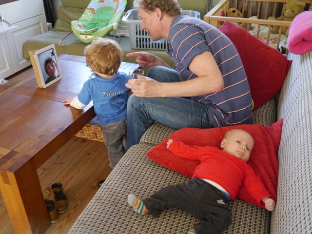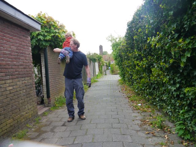 We gingen op de fiets naar de crèche, maar ik stond bij de verkeerde fiets. De bakfiets, maar papa wilde op de ‘gewone’ fiets omdat het zadel te laag stond. OK, ook goed, lekker zingen op de fiets!