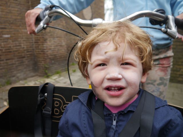Ik was verrast toen ik mama zag en was nog verraster toen ik zag dat ze met de bakfiets was. Niet dat ik dat liet merken hoor, ik liep er resoluut naar toe en ging er in zitten.