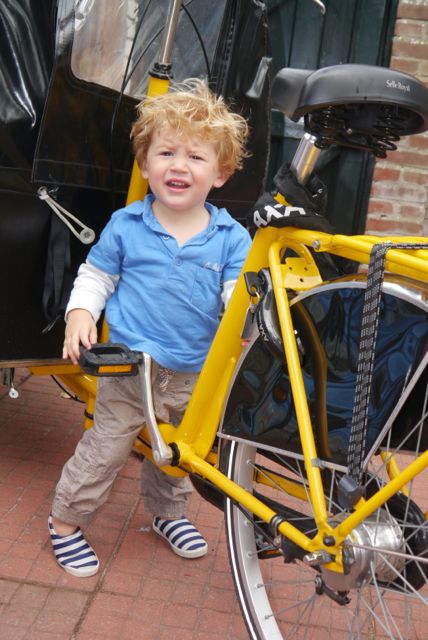 Ik zat nog wel even vast op de bakfiets. Terwijl ik me klaar maken was om te vertrekken, bleek dat m’n benen net te kort waren voor de stang. Tsja, dat is wat je nu noemt een penibele situatie…