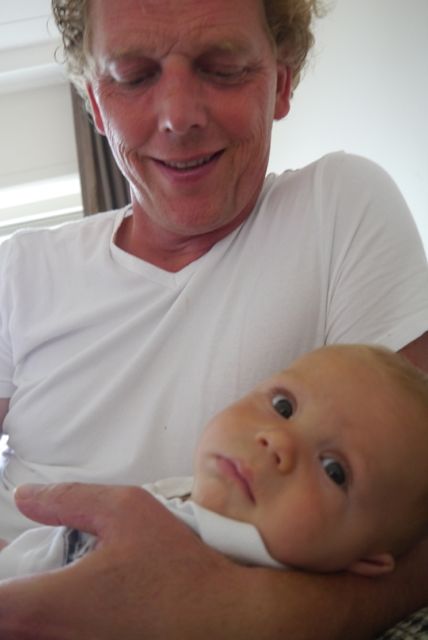 We hebben lekker gespeeld en gedaan en nadat ik LANG geslapen had, zijn we nog even naar de AH in Bussum gegaan. Ik in de bakfiets en Siebe zijn eigen fiets. Een fijne tocht en altijd leuk mensen te zien. Vooral Siebe. Dan zit ik in de winkelwagen en ineens heb ik dan zin in een knuffel en spreid m’n armen.