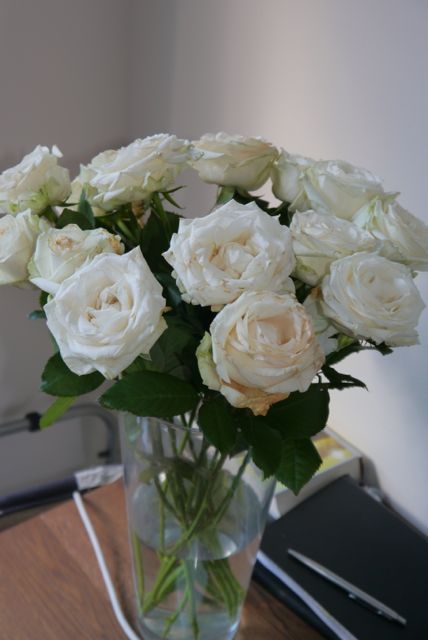 Oh ja, en we hebben altijd bloemen in huis. Van bloemen wordt je vrolijk en als je vrolijk bent, staat het goed bij je humeur. Win-win, en alweer een fijn feit.