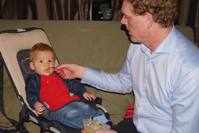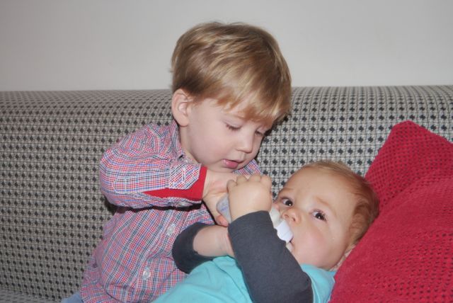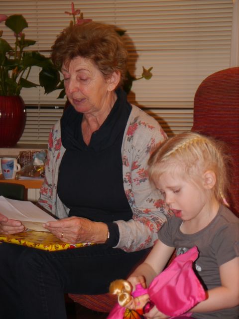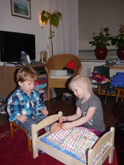 Zij heeft een bed voor haar babybjorn gekregen en nadat papa die in elkaar heeft gezet, hebben we daar mee gespeeld. Een bed geeft een nieuwe dimensie, want dat geeft aan dat je naast de poppenwagen dat dus ook kunt doen met een pop. Ik bedoel maar.