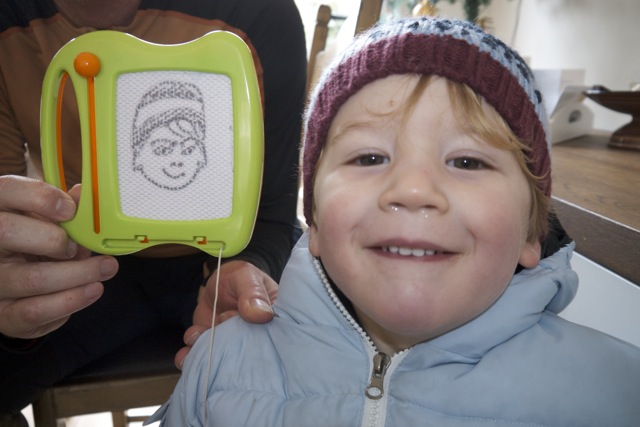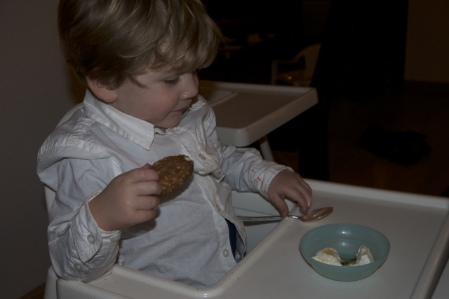 Dzjez zit een b e e t j e in z’n opstandige periode en zegt dan neej tegen dingen die hij graag doet. Gek hè, het lijkt wel de omgekeerde werel.