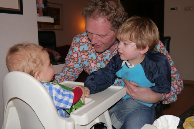 Ik vind het sowieso heel gezellig. Met Dzjez en papa en mama. Elke keer als ik ze zie, word ik blij. Dzjez is denk ik ook blij met mij, want hij houdt me graag vast.