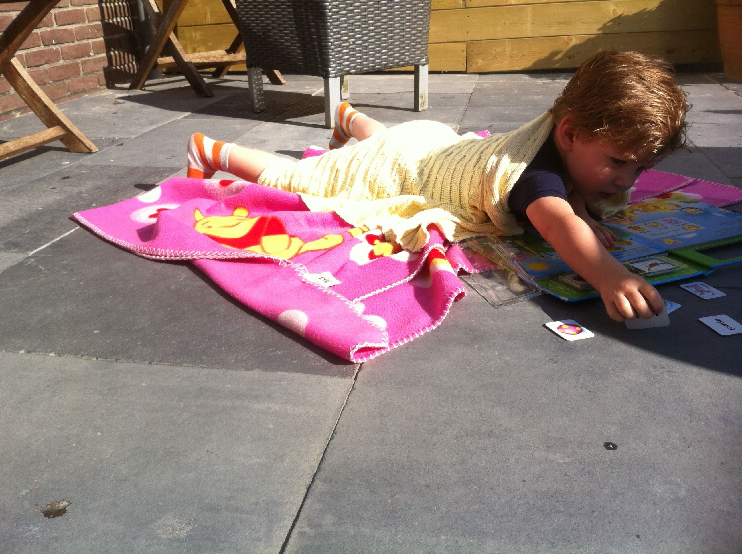 Ten tweede moet ik zeggen dat we naar de crèche zijn geweest en dat was weer als vanouds! Veel gespeeld en gelachen en lekker buiten. Moet misschien morgen maar een korte broek aan als het weer zulk lekker weer is. Nu krijg ik er zwetende knietjes van.