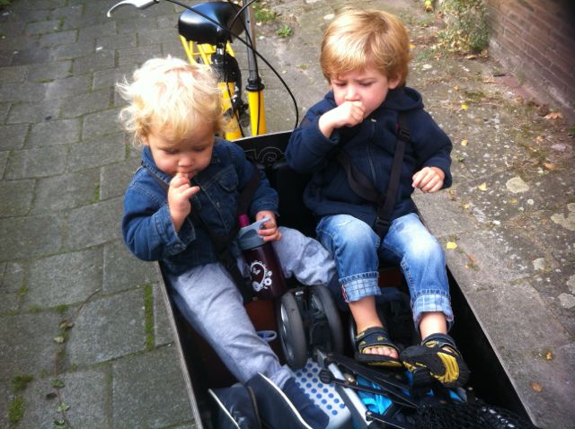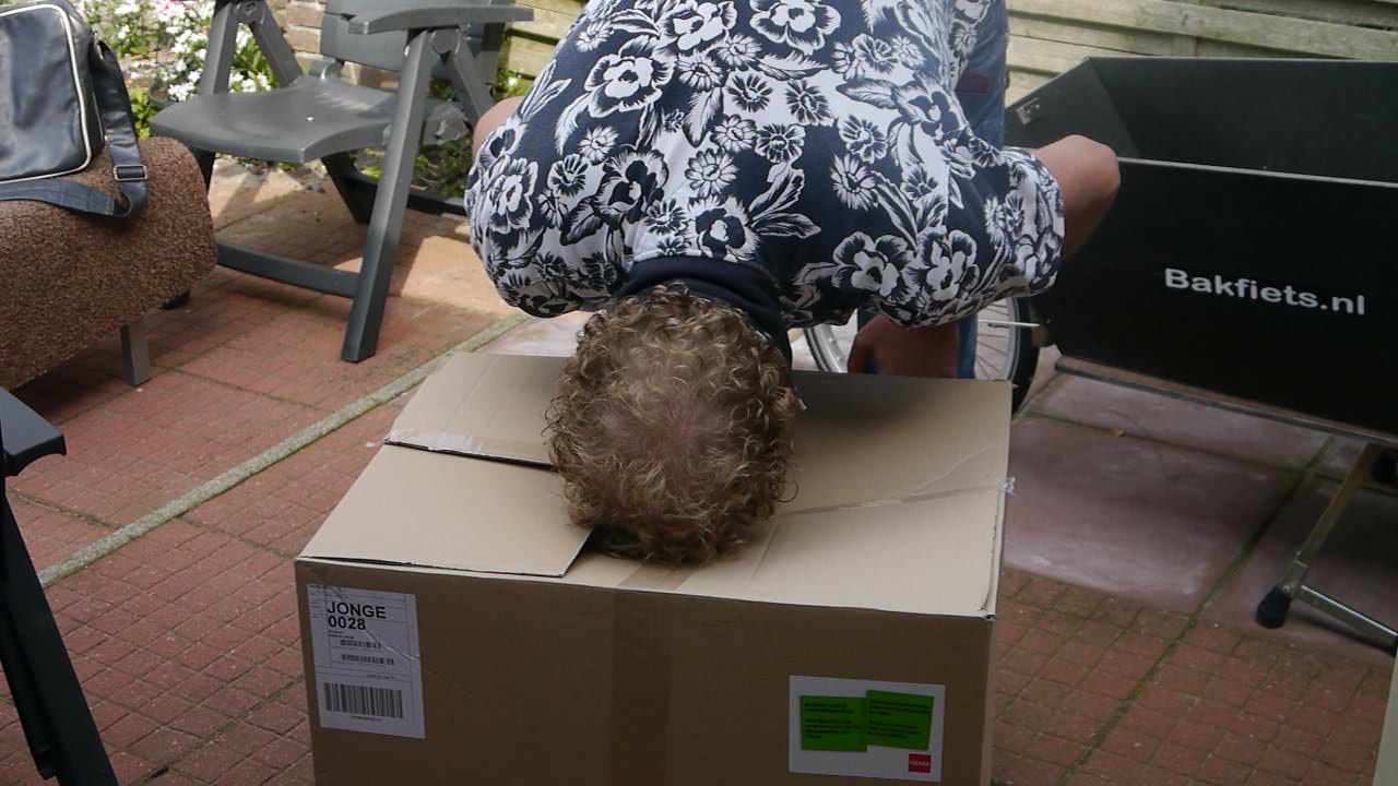 We hebben een doos opgehaald bij de Hema. Daar zat een autostoeltje in en nog een paar dingen en toen dat er uit was wilde ik er in natuurlijk! Dat is leuk! En ik wilde er niet meer uit. En Jay ook niet. Nau ja, na een tijdje dan weer wel.
