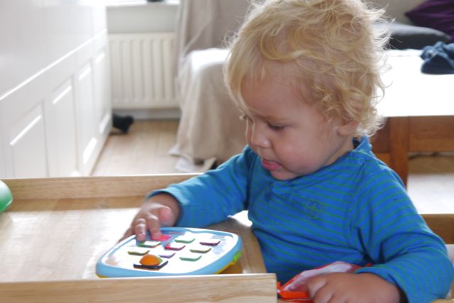 Dat kon op twee manier. Op de iPad, want mama heeft een paar leuke puzzels gedownload en in het echt, want er stond een man op de markt met goedkope spellen en puzzels en papa heeft er 2 gekocht. Van Curious Geaorge. Goeie deal.