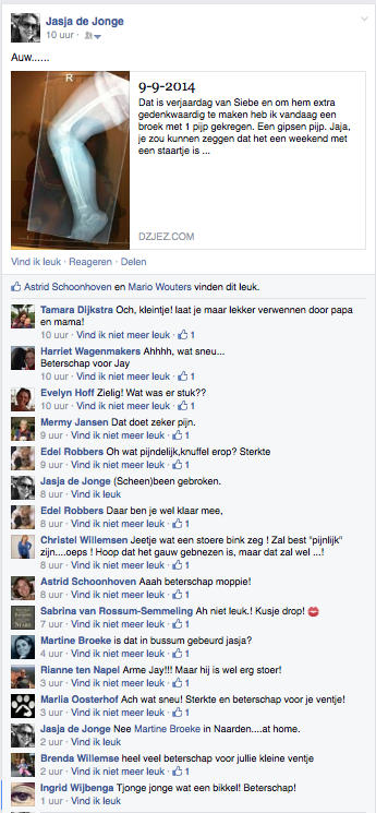 Bij Jay merk je amper dat hij een gebroken been heeft. Soms even aan het eind van de dag of aan het eind van z’n energie. Dan moet hij gewoon even naar bed en daar slaapt hij dan weer goed!