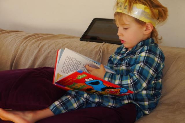 Ik had een kroon op mijn brein aangesloten, want dat staat goed en voelt goed en dan kan ik haast oefenen voor mijn volgende baan. Voorlezer. Voorlezer met kroon.