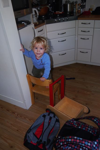 En omdat ik een paar dagen niet geschreven heb zijn er ook nog een paar dingen uit het toen. In dit geval om ze niet te vergeten. Ik wil namelijk alles zelf doen tegenwoordig. ALLES! En als eerste, dus voorop fietsen met papa, als eerste de trap af (alhoewel papa dat liever niet heeft, want hij loopt sneller), zelf mijn kleren aan (dan kom je er achter dat een broek een voor- en een achterkant heeft) en zelf afwassen. Dat kan ik ook.