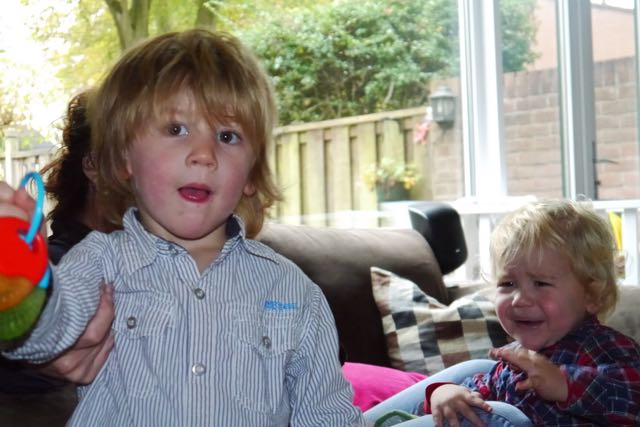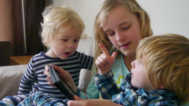 En ik vind dat ook leuk en doe net of ik kan zingen. Ondertussen kroel ik een beetje in het haar van LAH. En terwijl we dat aan het doen zijn, gaat de deur ineens weer open… SIEBUH! Die is er natuurlijk ook! Nog meer knuffelplezier. Super.