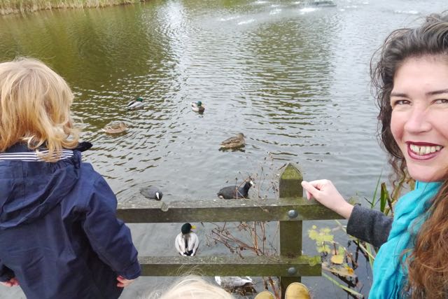Daarna een kopje koffie en een speculaaskoekje en een gebruiken kopje en spelen en gezelligheid en naar de WC gaan, en toen was het eindelijk zo ver. We gaan vertrekken! Het miezert een beetje en de molen waar we naartoe moeten is amper zichtbaar door de sluiers van regendruppels. Het is frisjes, maar dat laat alleen de thermometer zien, want van binnen ben ik warm en ik ben er klaar voor….