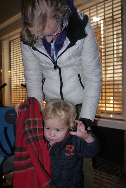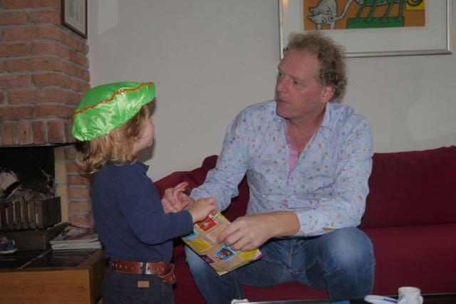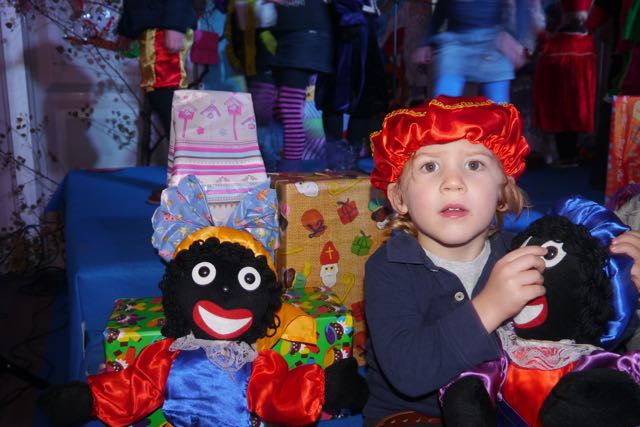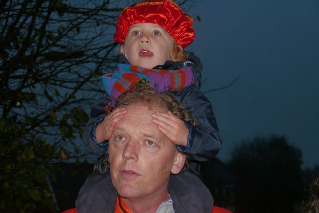 Toen we uiteindelijk in de auto zaten ging het licht bij Dzjez snel uit. We waren de bocht nog niet om, of zijn ogen vielen dicht. Ik denk dat hij aan de binnenkant van zijn ogen nog heel wat Zwarte Pieten en Sinterklazen heeft gezien en waarschijnlijk ook nog alle liedjes een keer heeft gezongen. Ik vind dat goed, want volgend jaar ben ik ook aan de beurt en begrijp ik het concept. Kan Dzjez me mooi de dansjes en de liedjes leren!