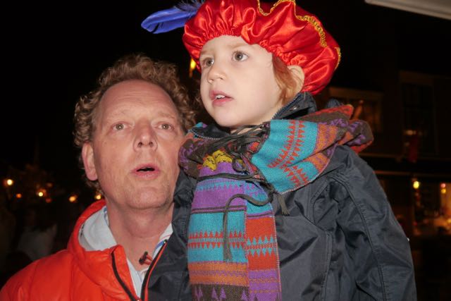 Ik loop met papa aan de hand in een soort permanente staat van extase achter de stoet aan. Links en rechts vliegen Pieten voorbij als schimmen in een mooie droom en het lijkt alsof ze me niet zien staan. Kinderen krijgen handjes strooigoed toegestopt en ik sta met onderlip tussen mijn tanden met mijn handje uitgestoken te wachten, maar krijg niks.